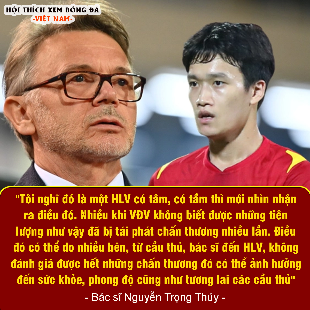 Nhưng nếu bác sĩ mà không tiên lượng được chấn thương, cho cầu thủ vào chơi sớm quá mà chưa hồi phục hoàn toàn, thể lực chưa đủ, tổ chức bị tổn thương chưa được tích lũy đầy đủ những yếu tố để hoạt động thể thao với cường độ cao thì đương nhiên sẽ bị chấn thương trở lại.