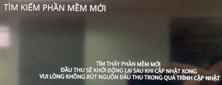 Bước 2: Nếu phiên bản đầu thu chưa được cập nhật lên phiên bản mới nhất khách hàng thực hiện bấm nút màu xanh lá cây trên điều khiển một vài lần cho tới khi màn hình hiển thị như bên dưới: